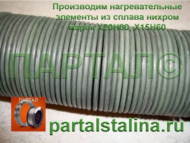 - Материал: Нихром Х15Н60-Н (Ni 15 %, Cr 60 %).
